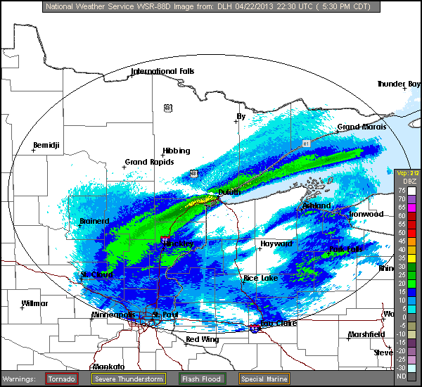 from 4:57 PM CDT to 5:30 PM CDT, April 22, 2013