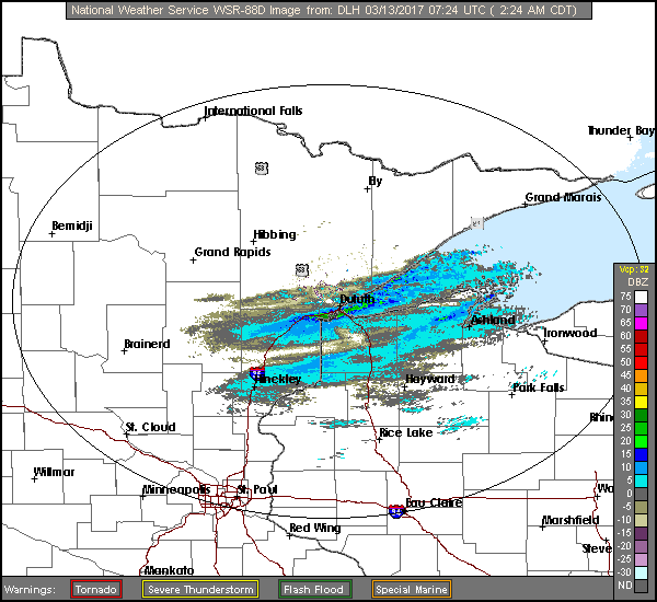 A strong band of lake effect snow dumped 5 to 13 inches of snow in the western third of Duluth, MN, especially Gary New Duluth, and in the city of Superior, WI. The heaviest snow fell from 1 AM to 6 AM CDT. Snowfall rates reached two to three inches per hour.